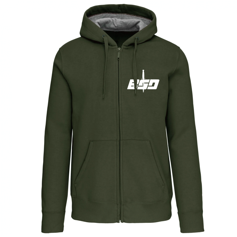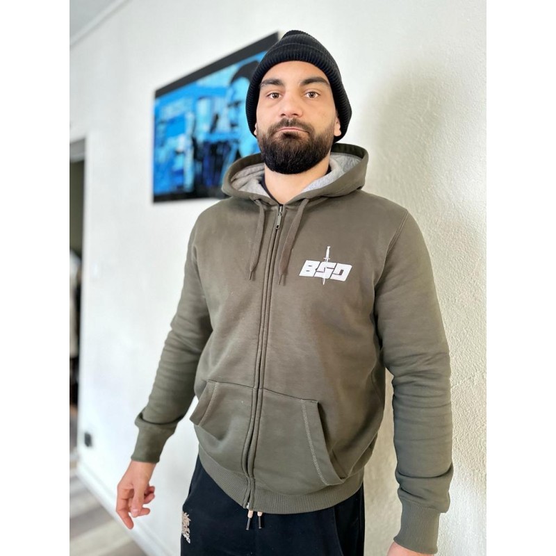 Veste sweat-shirt zippé capuche kaki de la gamme Opérateur