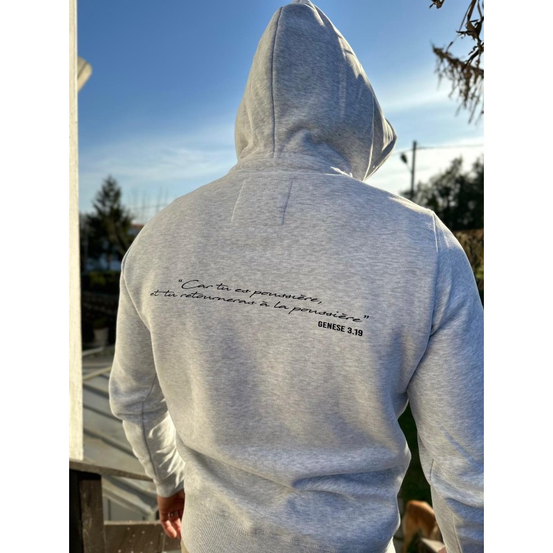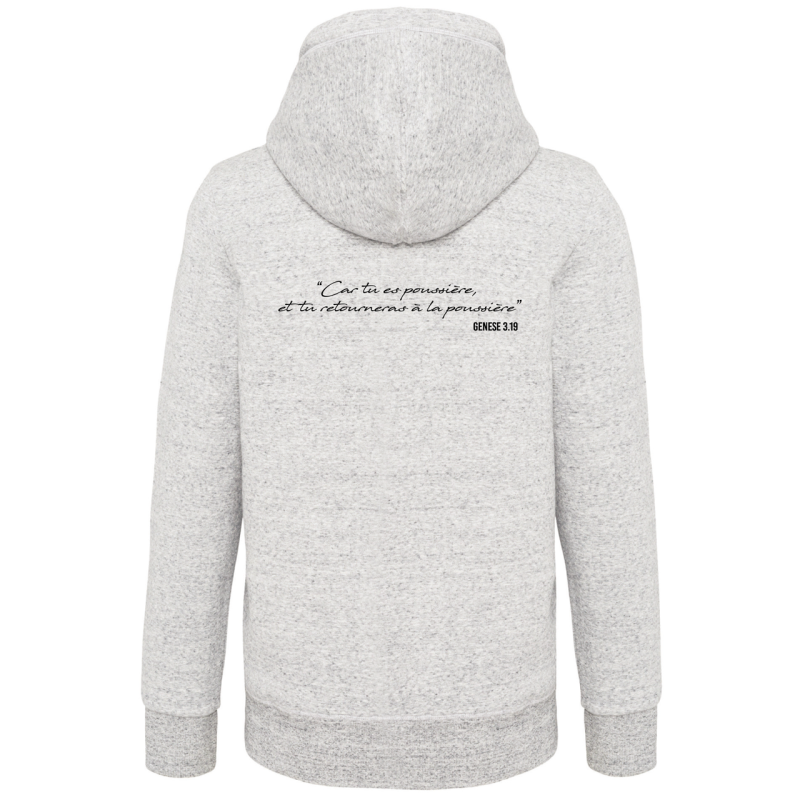 Sweat à capuche gris chiné clair.