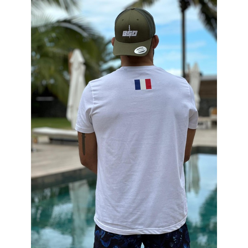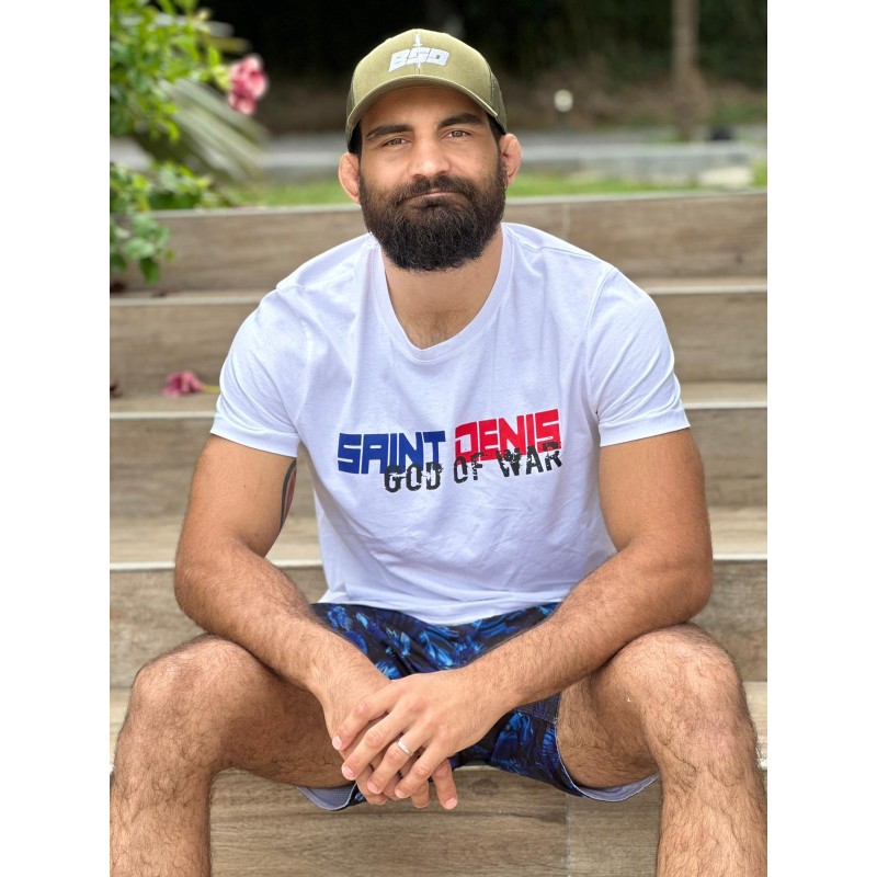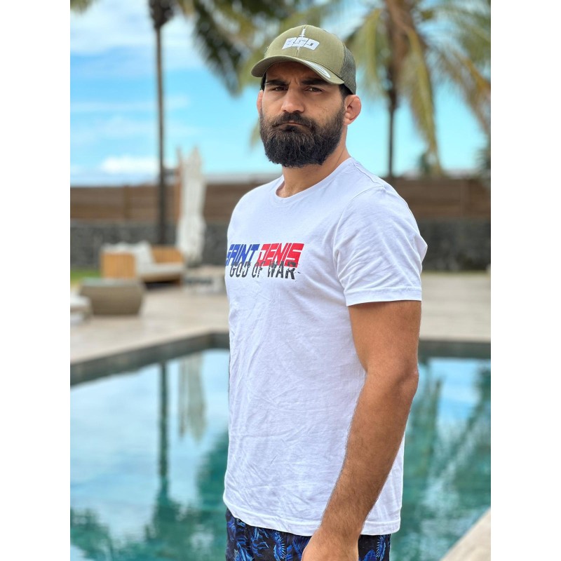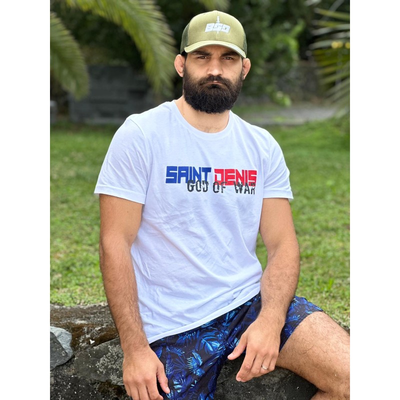 Plongez dans notre toute nouvelle version du tee-shirt "God of War, l’original", cette fois-ci rehaussée des couleurs emblématiques bleu, blanc et rouge, à la fois grâce à l’imprimé devant mais aussi au drapeau imprimé dans le dos. Ce tee-shirt distinctif commémore les combats de Benoît Saint Denis, le God of War de l'UFC, avec une touche patriotique éclatante. Plus qu'un simple vêtement, ce tee-shirt est une véritable déclaration de force et de détermination, sublimée par une note de fierté nationale.