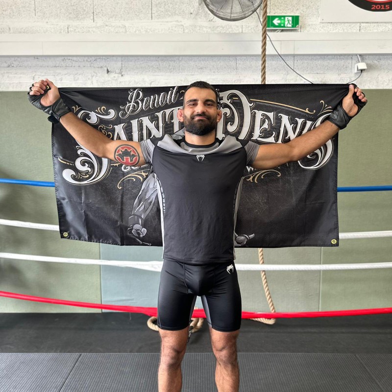 Pour les supporters de la première heure, le drapeau God Of War en édition brute, noir et blanc avec une touche de doré, incarne la force brute de Benoît Saint Denis.