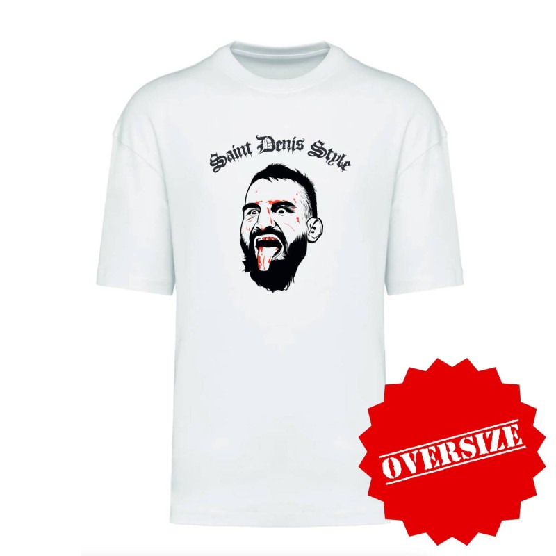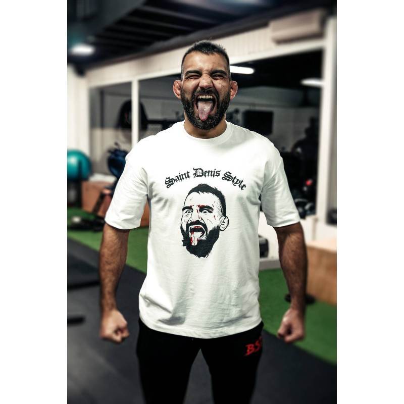 Affirmez votre soutien à Benoît Saint-Denis avec ce tee-shirt oversize qui capture son aura unique et sa rage de vaincre. Le design met en scène son côté sombre de guerrier, langue tirée et visage marqué par le sang, un symbole brut de puissance et d’intimidation dans la plus pure tradition des combattants. Ce geste iconique, à mi-chemin entre la provocation et la domination psychologique, est autant un cri de guerre pour effrayer l’adversaire qu’un rituel triomphant pour célébrer la victoire durement arrachée. Il incarne à la perfection l’esprit combatif et la détermination sans faille de BSD, sur le ring comme dans la vie.