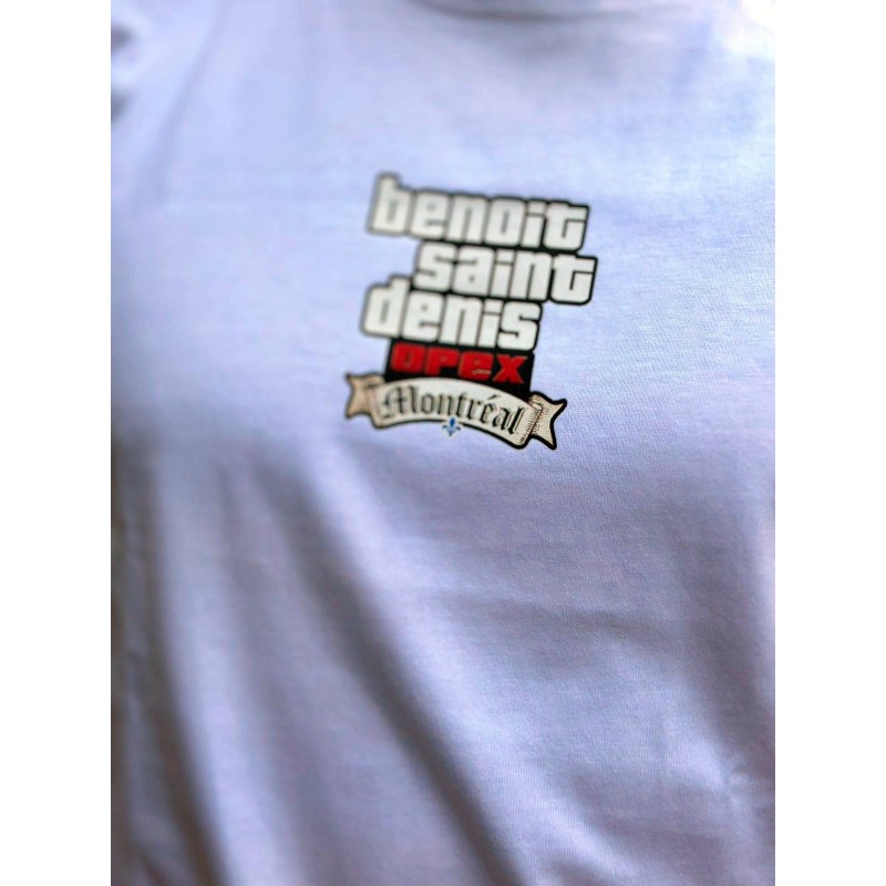 Simple, clair, impactant. Ce tee-shirt blanc édition limitée affiche fièrement son motif centré sur la poitrine. Le message est clair : Benoît Saint Denis a écrit une nouvelle page de son histoire à Montréal, et ce t-shirt en est le rappel symbolique.