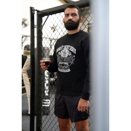 Ce sweat noir incarne cette énergie brute : celle d’un guerrier en marche, d’un esprit concentré, d’une mission qui dépasse le ring.