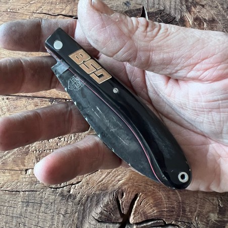 • Manche (11 cm) : Corne de buffle noire, gravée du logo BSD.