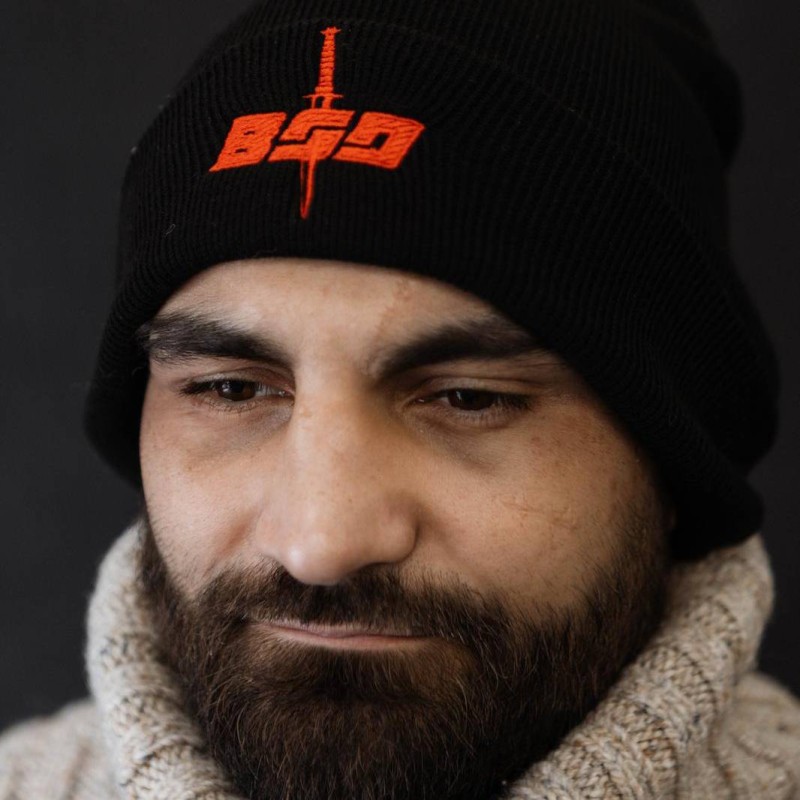 Bonnet noir BSD avec broderie rouge, énergique et affirmée.